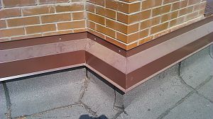 Цокольный отливЧаще всего отливы изготавливают из стали, реже из пластика. Для изготовления используют оцинкованную сталь, которую потом покрывают полимерами, чтобы отлив не подвергался коррозии и был устойчив к перепаду температур.