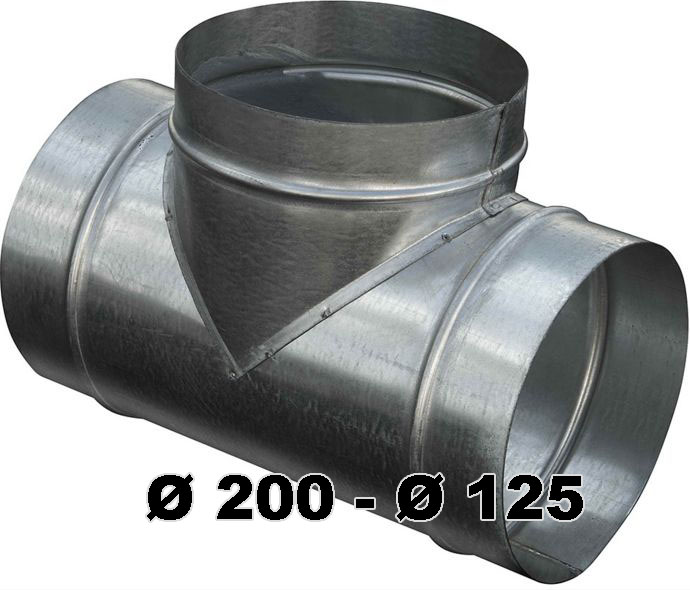 Тройник Ø200- Ø125изготавливаем из оцинкованной, нержавеющей и оцинкованной стали с полимерным покрытием.